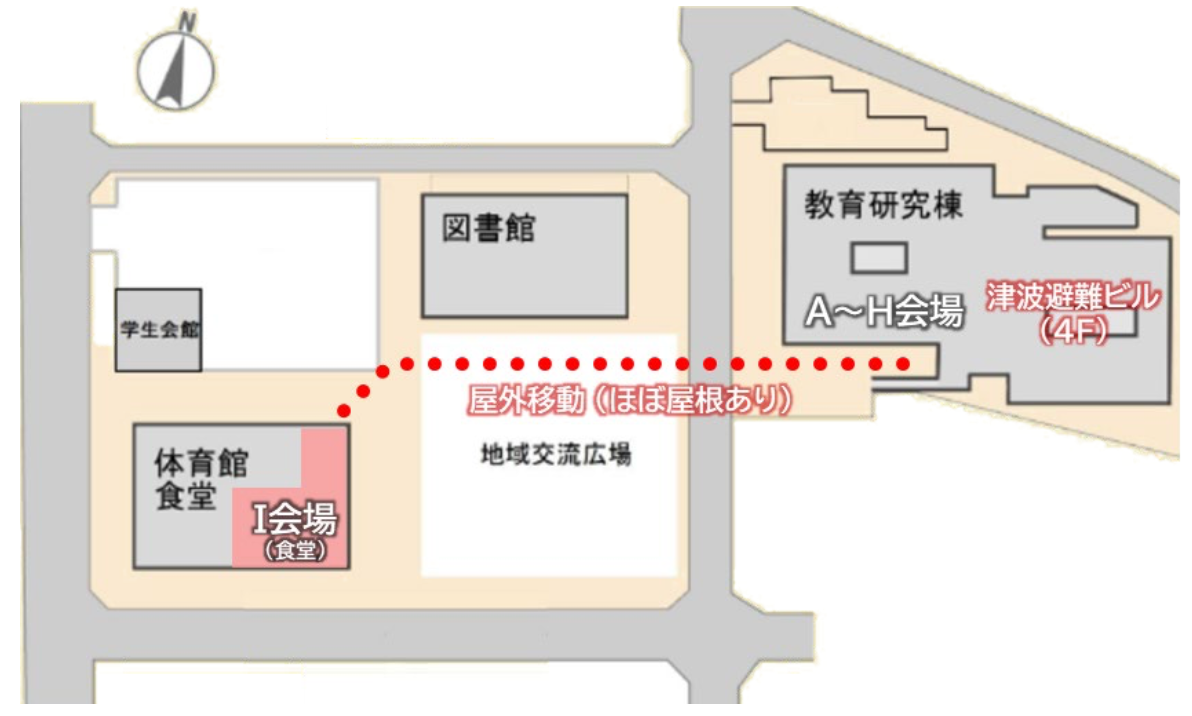 教育研究棟 ↔ 食堂(I会場)